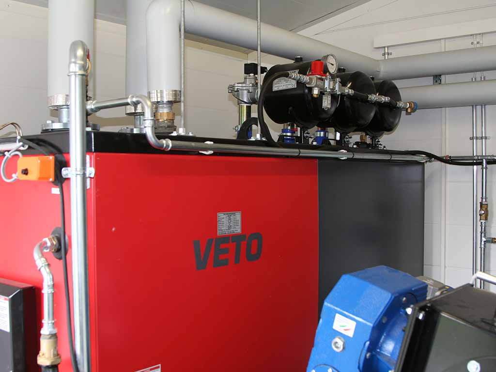Veto-stokerikattila, Savukaasupuhdistin (>220 kW) Vesijäähdytteinen ja liikkuva-arinainen poltin, Polttimen jäähdytyspumppu, Jousipurkain (polttolaite), Sulkusyötin, 2-osainen tuhkaruuvi, Veto Control L-ohjauskeskus, Kuiviinkiehuntasuoja, 1 x putkilähtö/-paluu eristettynä, Varoventtiilit, Täyttöryhmä, Ilmausventtiili, Paisunta-astia lämmityskattilalle